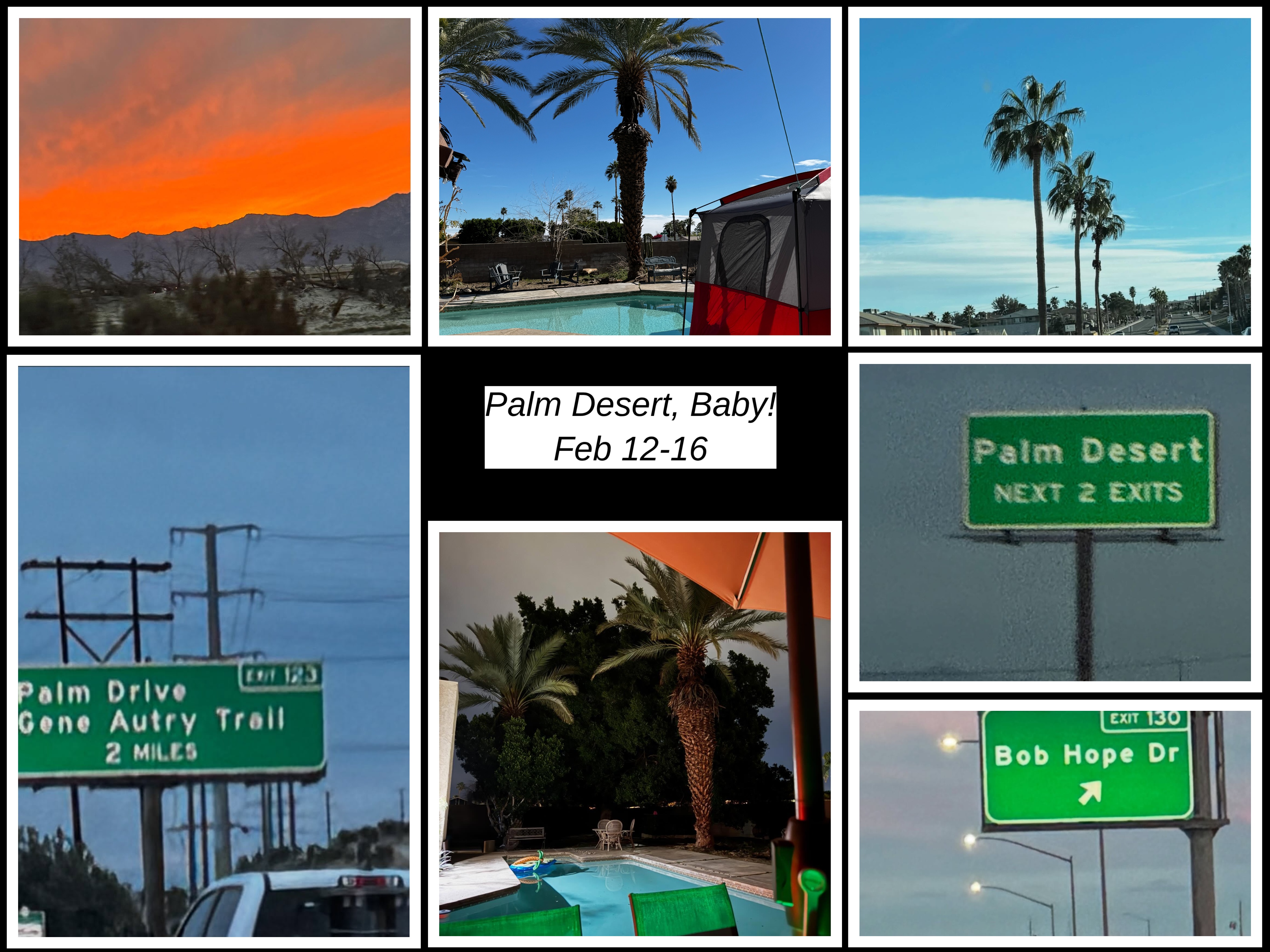 Palm Desert was our destination in February 2026. We love to drive when we travel, so we drove from Salt Lake City to Palm Desert, through Arizona and Nevada, transitioning through snowy mountains, desert wonders, the Virgin River Gorge, solar farms, Las Vegas, windmills and into the lovely temperatures in the 70s!