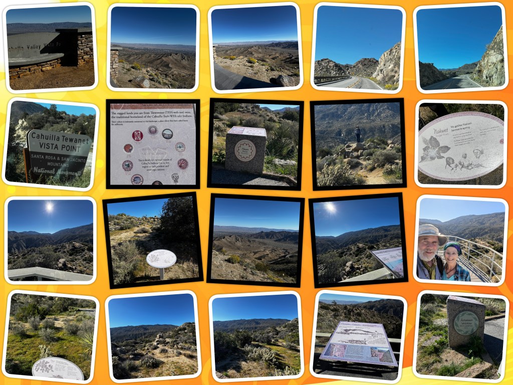 Our first outing in the Palm Desert, CA area (Coachella Valley) was to the Santa Rosa and San Jacinto Mountains National Monument (https://en.wikipedia.org/…/Santa_Rosa_and_San_Jacinto…). “The Cahuilla peoples own substantial acreage within the monument, are one of the managing agencies, and have historic cultural sites and interests throughout the mountains.”