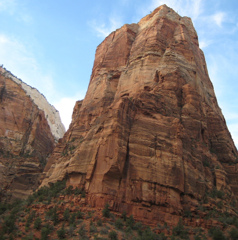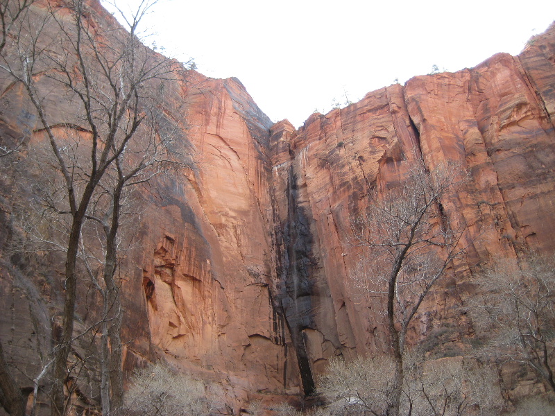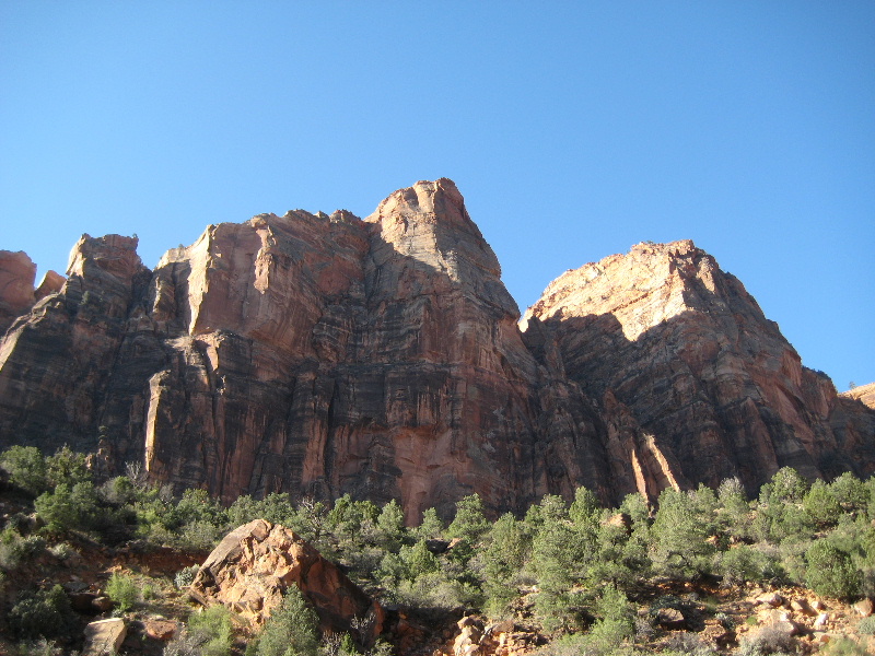 The Park does not permit cars to travel to the top of the canyon anymore. In 2000, the National Park Service implemented a shuttle which takes tourists throughout the canyon and makes 7 stops. Since shuttles run every 6-8 minutes throughout the day and evening, you can get out and take photos and hike for as long as you want. We took the shuttle to the end of the line, at “Temple of Sinawava“, where the Virgin River narrows – called “The Narrows”. At this point the river becomes the trail and you can wade through the narrows. We had our water shoes with us and had planned to wade a little, but it was late in the day so we decided against it. The following photos are what we took in this canyon: