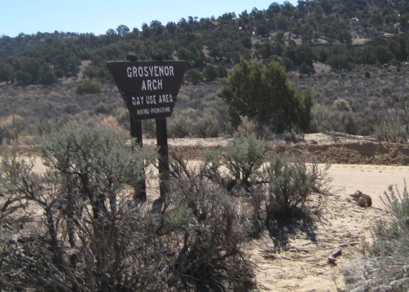 Nearly to the end of Cottonwood Canyon Road, about a mile off the road, is the Grosvenor Arch, a natural double arch.