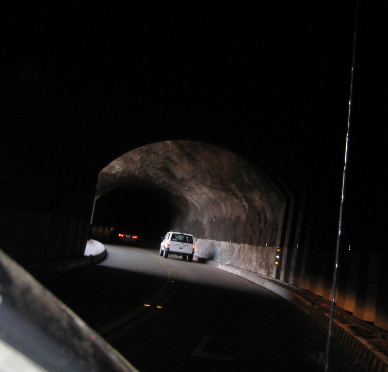 To get out of the Park on the East Side, you must go through the tunnel in the mountain, which is a little over a mile long. Learn more about the history of the tunnel here.